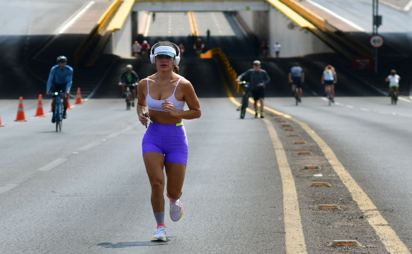 Imagem colorida de pessoas praticando atividades físicas no Eixão do Lazer