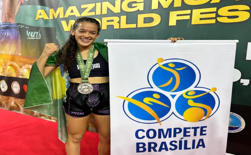 Com apenas 17 anos e um ano de experiência de muay thai, a jovem brasiliense Pietra Sena alcançou uma conquista histórica: o vice-campeonato mundial da modalidade, disputado entre os dias 22 e 29 de junho, em Verona, na Itália. A ida da atleta para o mundial foi viabilizada com o apoio do Programa Compete Brasília, da Secretaria de Esporte e Lazer do Distrito Federal (SEL-DF).